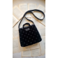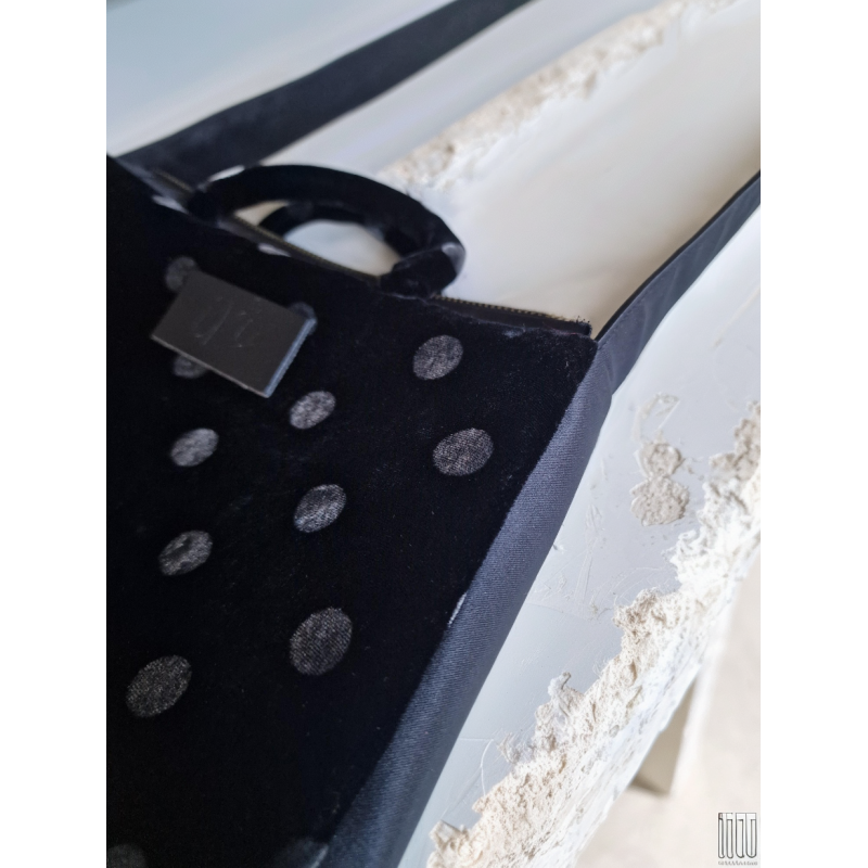 Bolso de terciopelo de seda con motivo de lunares. Interior de loneta de algodón con bolsillo de parche interior.
